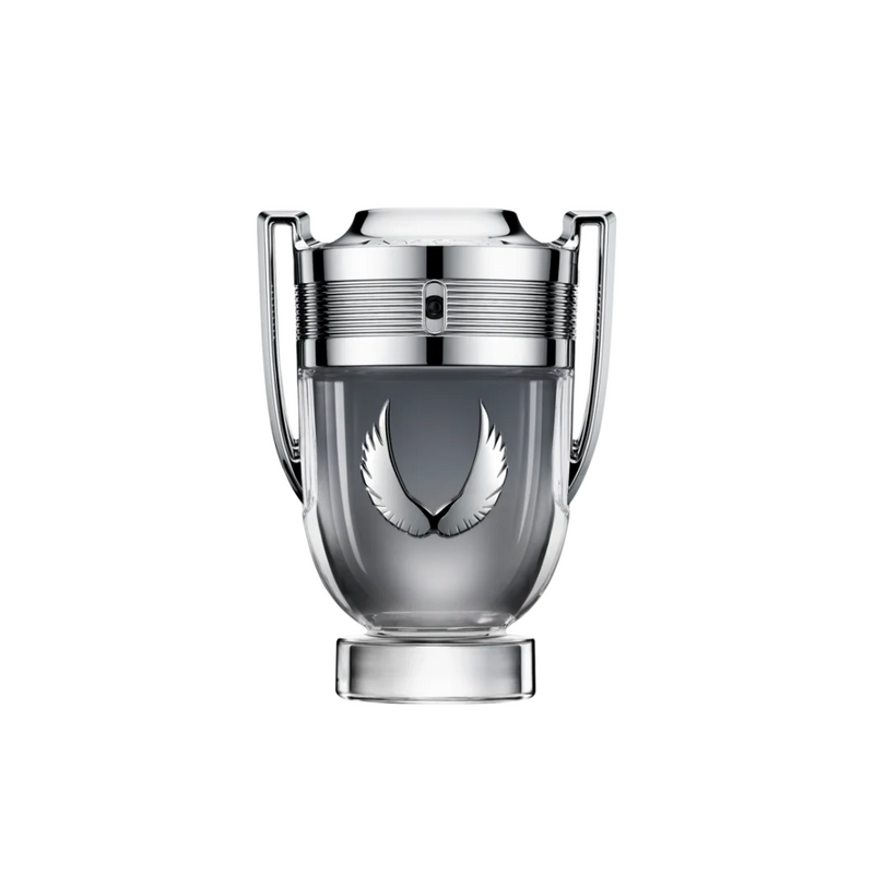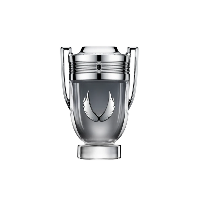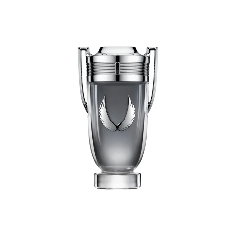 As asas icônicas do Invictus, pela primeira vez, são estampadas em um acabamento prateado em relevo no frasco de platina em formato de troféu. O luxuoso vidro revela tons de cinza, gradualmente, mais intensos, coroado com cromo. Conquiste o seu troféu e eleve o jogo ainda mais alto.