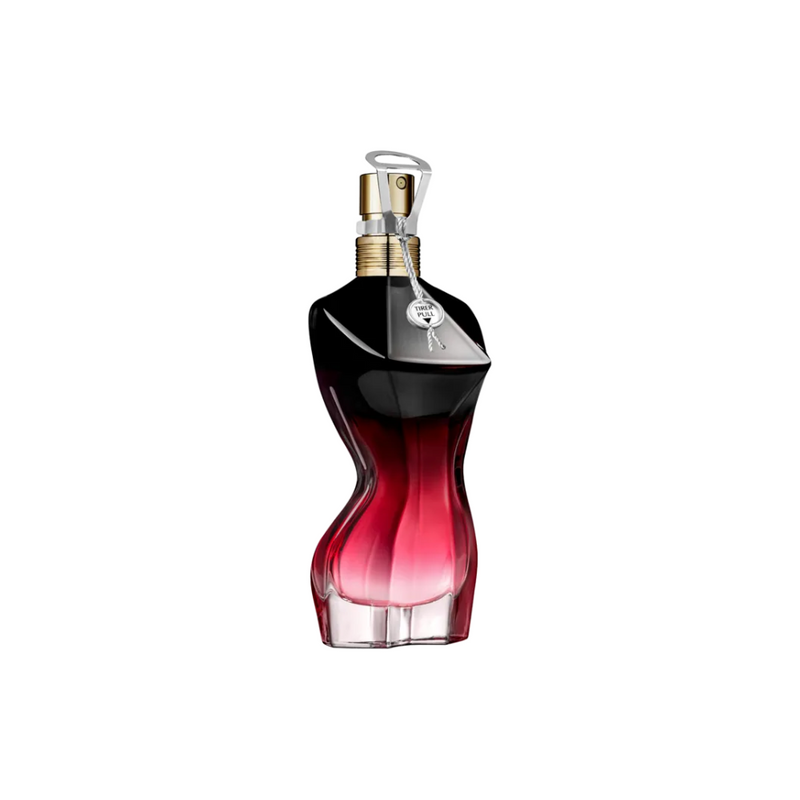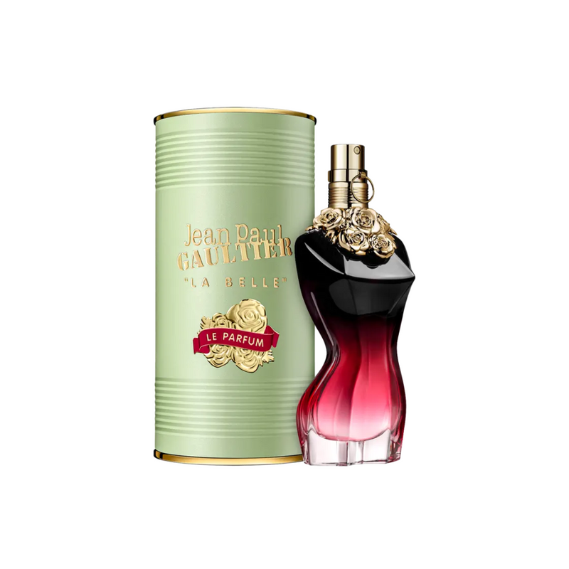 Do vermelho ao preto, a feminilidade original La Belle Le Parfum se torna ainda mais intensa com um degradê de linhas perfeitas. Um visual totalmente sensual com um colar de rosas douradas, a própria tentação suspensa no pescoço. No jardim secreto de sua icônica lata verde Jean Paul Gaultier, La Belle Le Parfum floresce seu nome em metal dourado em relevo, além de uma coroa de rosas. O esplendor de uma fita vermelha “Le Parfum” completa a intensidade viciante. Caia na tentação!